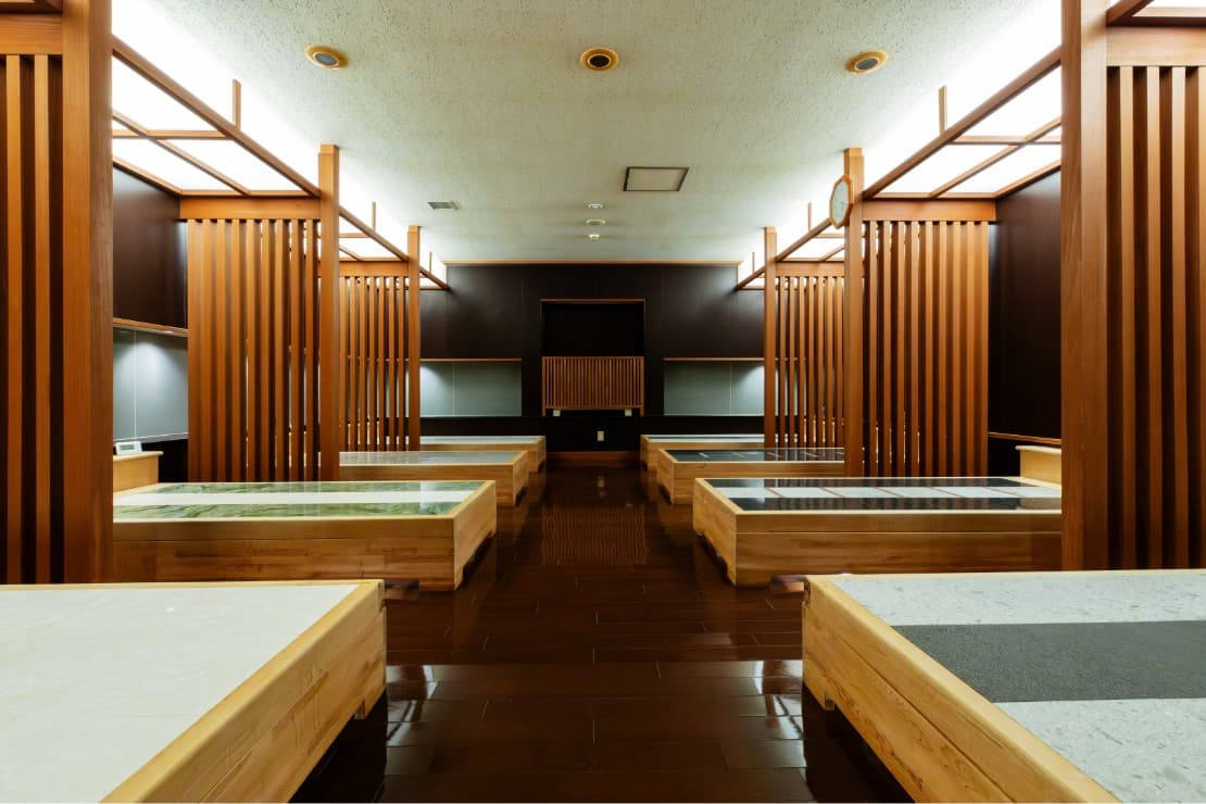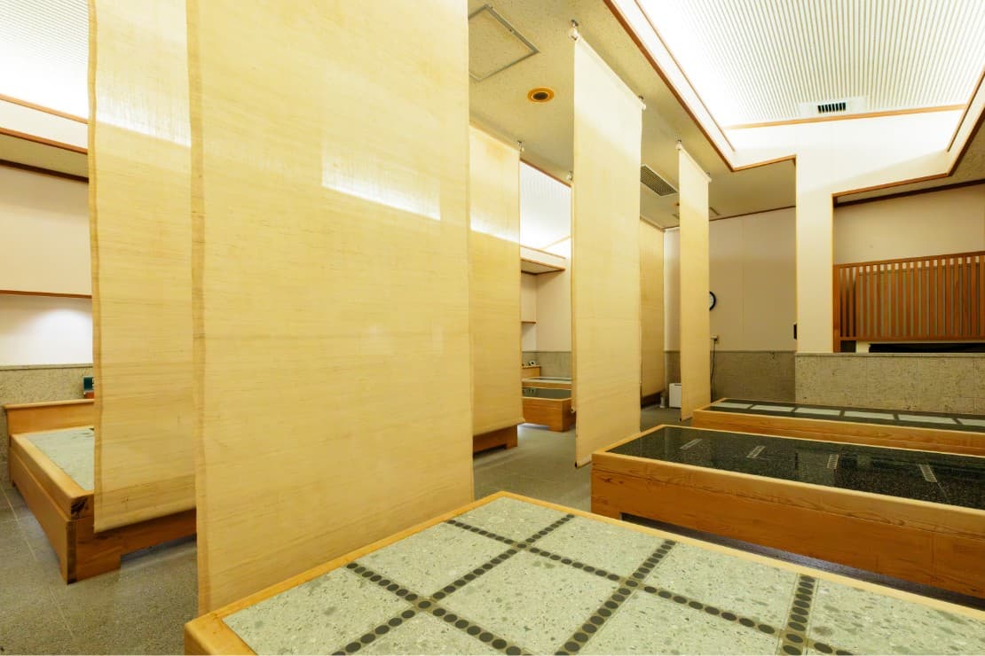 岩盤浴のご利用は、温泉受付にてご予約ください。ご希望のお部屋・岩盤ベッド(薬石)をお選びいただけます。