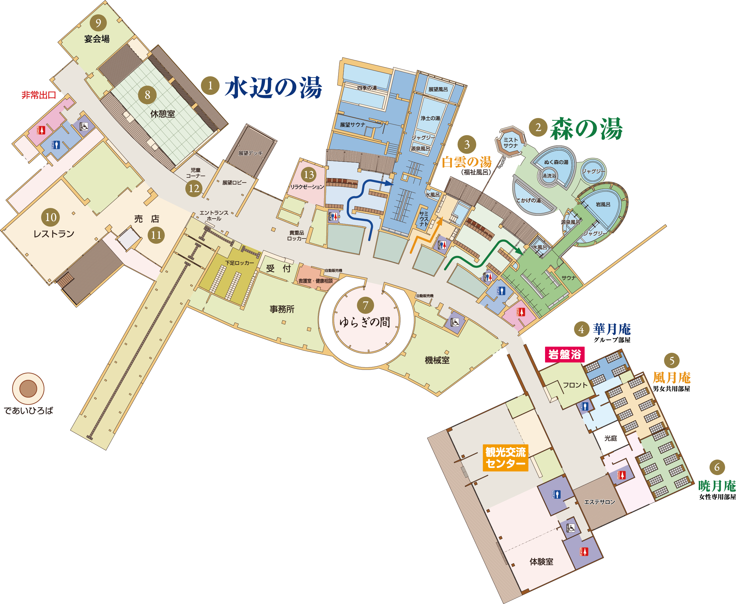 ゆぴかでは自然の温もりに包まれた多彩な癒やし空間をご用意しています。