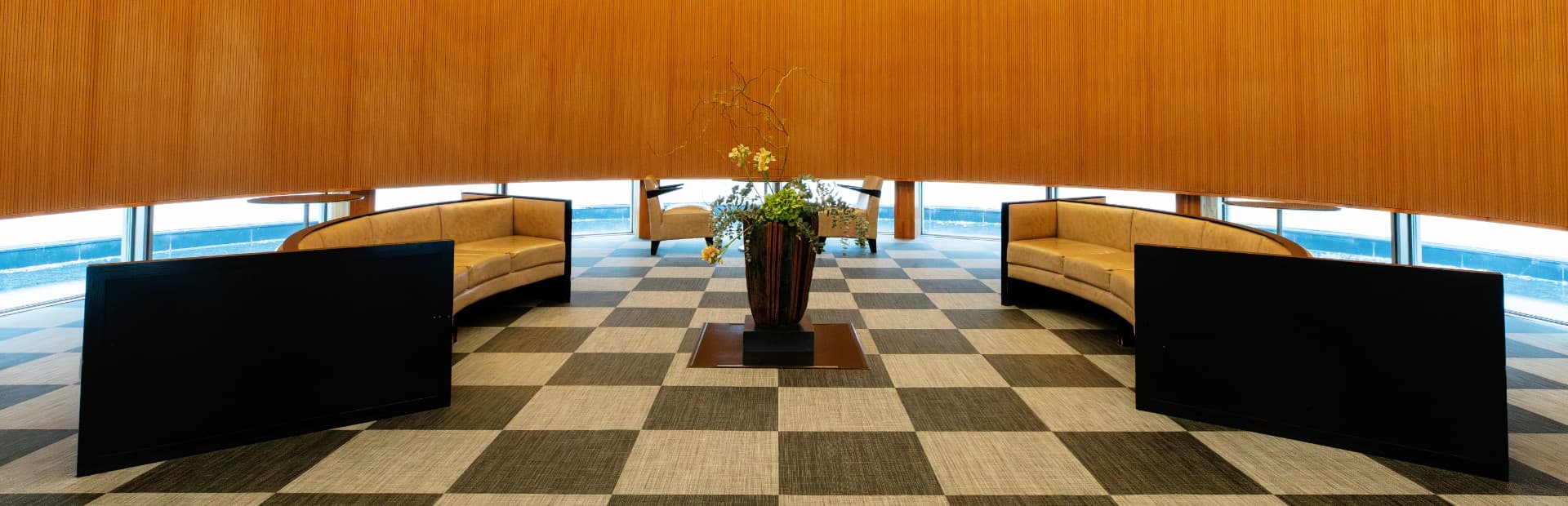 - 形状は、直径10mの円形で腰下からの採光で落ち着いた雰囲気を演出します。