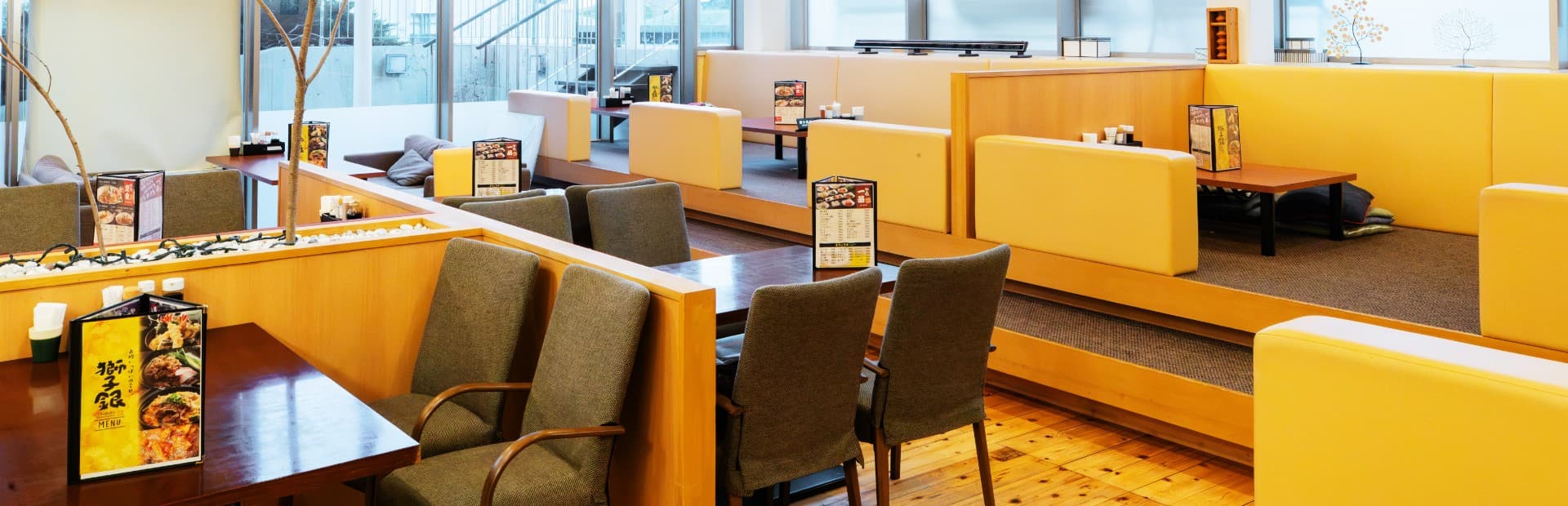 広々とした座敷席やテーブル席で、ゆったりとくつろぎながら食事をお楽しみくだい。
