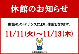 誠に勝手ながら施設定期安全点検のため、休館となります。